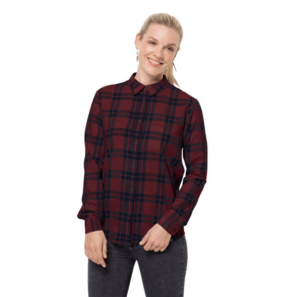 Home| Vrouwen| De Top| Jack Wolfskin Passagiershemd Voor Dames Hot Cordovan Rode Ruiten