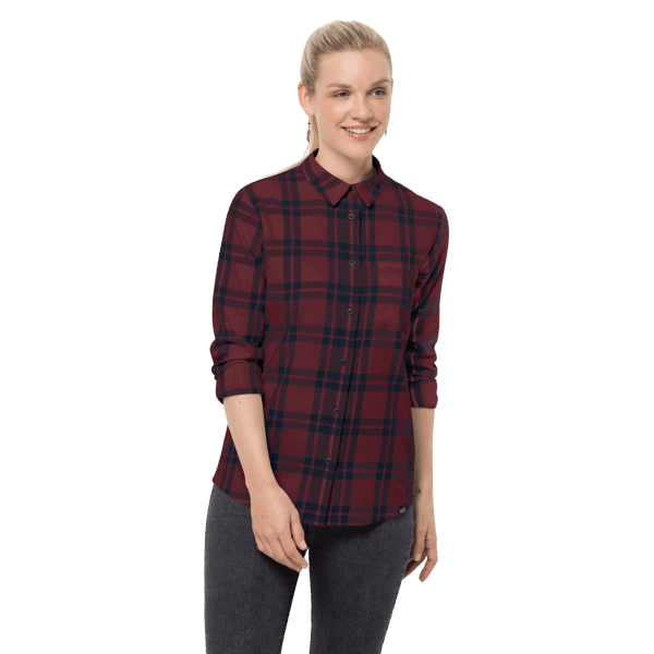 Jack Wolfskin Passagiershemd Voor Dames Hot Cordovan Rode Ruiten