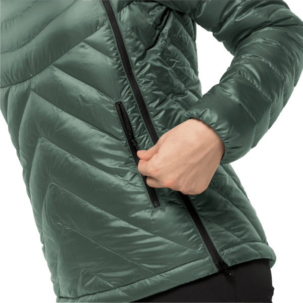 het Voorvak Over De Volledige Lengte Heeft Een Zachte Fleece Voering En Een Ritssluiting Aan Beide Kanten, En Is Ideaal Om Belangrijke Kleine Spullen Veilig En Wel In Op Te Bergen. En Als Het Tijdens Je Wandeltocht Begint Te Regenen Of Sneeuwen, Combineer Je Het Atletische Donsjack Eenvoudig Met Een Waterdicht Shelljack Met Behulp Van Het Kliksysteem.