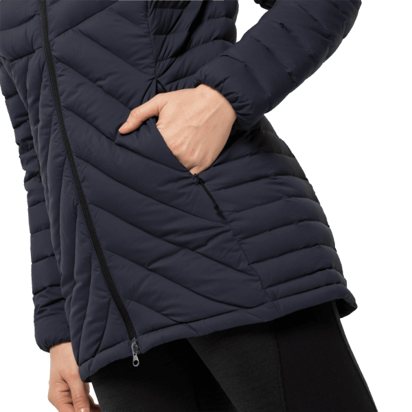 Het Bijzondere Ontwerp Van De Baffles En De Licht Getailleerde Taille Zorgen Voor Een Moderne, Elegante Stijl En Een Vrouwelijk Silhouet. De Baffles Zijn Gevuld Met Heerlijk Warm Ganzendons. En Met Zijn Hoogwaardige Stormlock-shellstof Is De Atletische Donsjas Winddicht En Voelt Superaangenaam Aan.