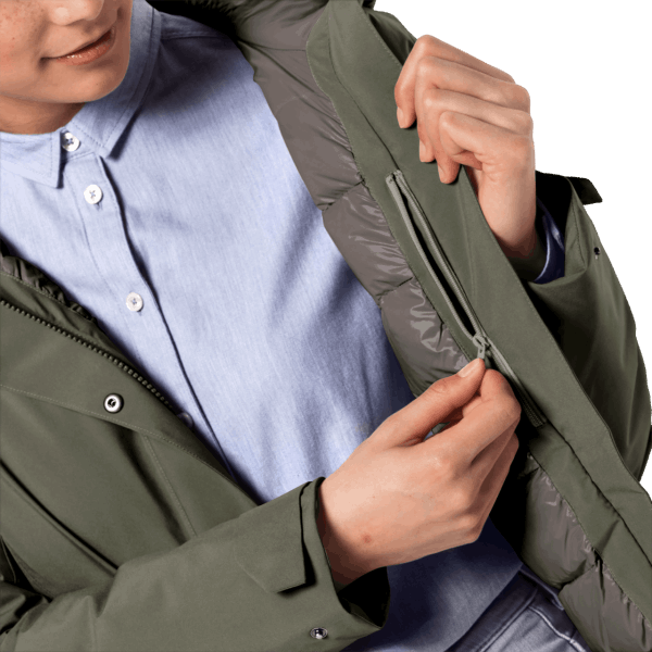 de Donsvulling Is Omhuld Met Een Gerecyclede Texapore Ecosphere-schaal. Deze Stof Is Licht Rekbaar, Biedt Het Beste Klimaatcomfort In Zijn Klasse En Biedt Betrouwbare Bescherming Tegen Wind, Regen En Sneeuw. De Cold Bay-jas Is Licht, Zeer Comfortabel Om Te Dragen En Heeft Een Stijlvolle, Glanzende Voering Die De Kenmerkende Look Aanvult. De Wind Waait Om Je Oren!