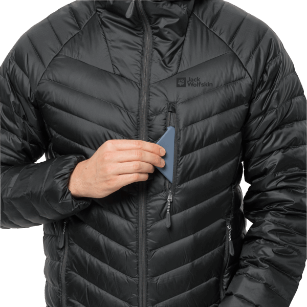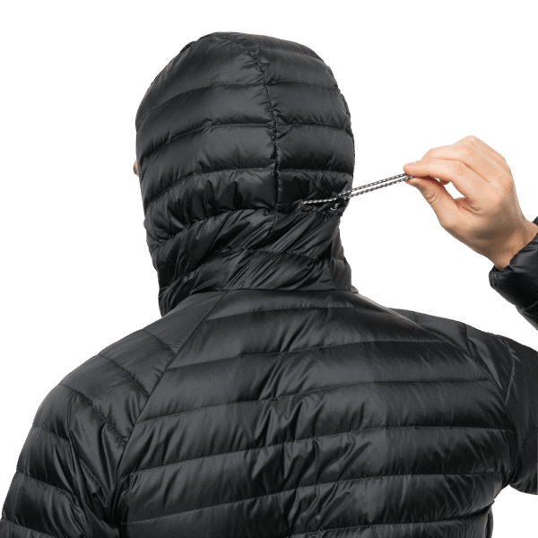 de Winddichte En Waterafstotende Pertex Quantum Shell-stof Is Gemaakt Van Gerecycled Polyamide En De Isolerende Vulling Is Rds-gecertificeerd, Hyperdry-dons Met Hoge Vulkracht. Hyperdry Dons Is Speciaal Geïmpregneerd, Zodat Het Niets Van Zijn Thermische Eigenschappen Verliest, Zelfs Niet Als Het Vochtig Is.