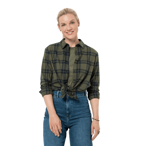 Home| Vrouwen| De Top| T-shirts En Lange Mouwen| Nachtblauw Geruit Jack Wolfskin Passagiershemd Voor Dames Nieuw