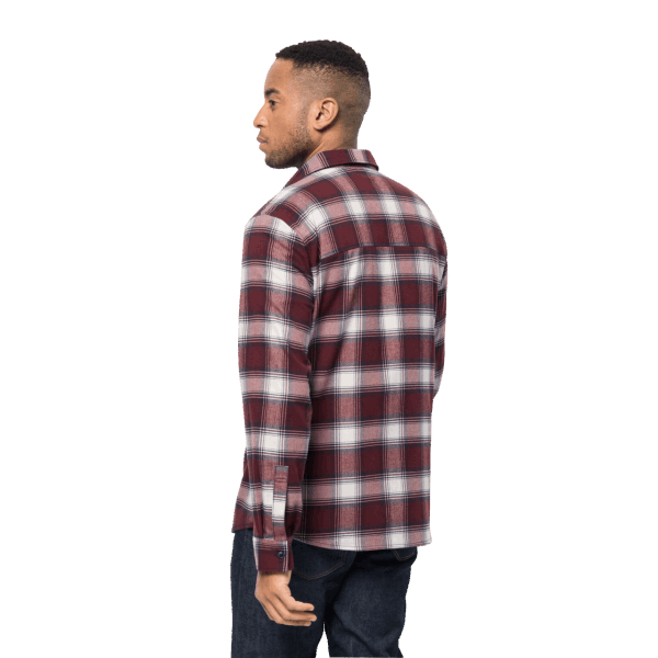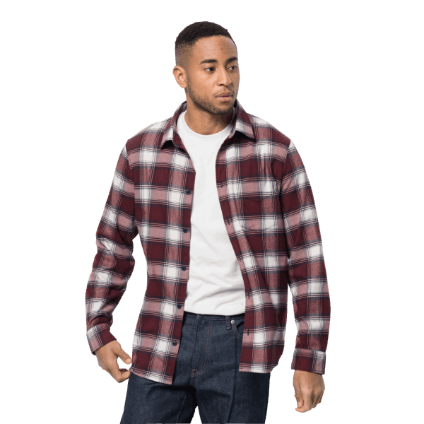 Home| Heren| De Top| T-shirts En Lange Mouwen| Fashion Cordovan Rood Geruit Jack Wolfskin Trailshirt Voor Heren