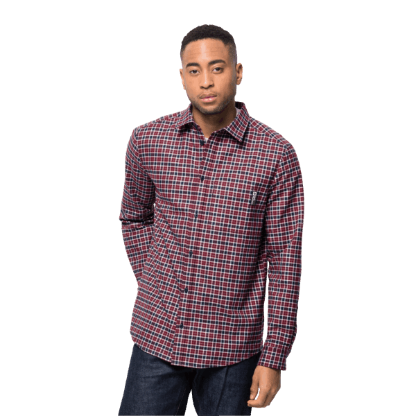 Home| Heren| De Top| T-shirts En Lange Mouwen| Jack Wolfskin Cordovan Red Checks Hot Men's Bergweg Shirt
