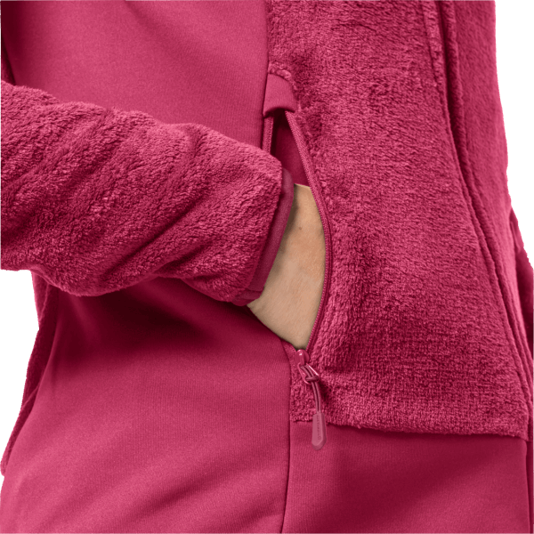 Home| Vrouwen| Jassen| Tussenlagen En Fleece| Jack Wolfskin Met Capuchon Voor Dames Met Volledige Ritssluiting En Cranberrymerken