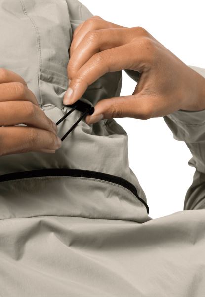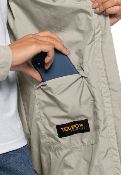 de Jas Is Gemaakt Van Een Zeer Lichte En Robuuste Texapore-stof Met Een Licht Gestructureerde Afwerking Die Heerlijk Aanvoelt. De Stof Is Natuurlijk Ook Waterdicht, Winddicht En Ademend. En Als Je De Capuchon Niet Nodig Hebt, Kun Je Hem In De Kraag Opbergen.