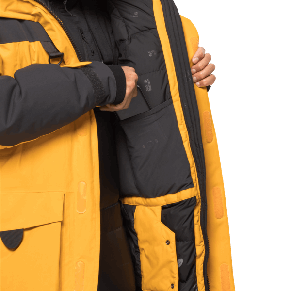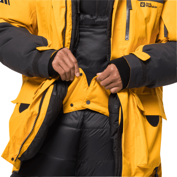 texapore Kern Maakt De Parka Uit De 1995-serie Waterdicht, Volledig Winddicht En Ademend. De Robuuste Polyamide Buitenstof En De Donsvulling Zorgen Voor Een Optimale Bescherming Tegen Weersinvloeden En Warmte-isolatie.