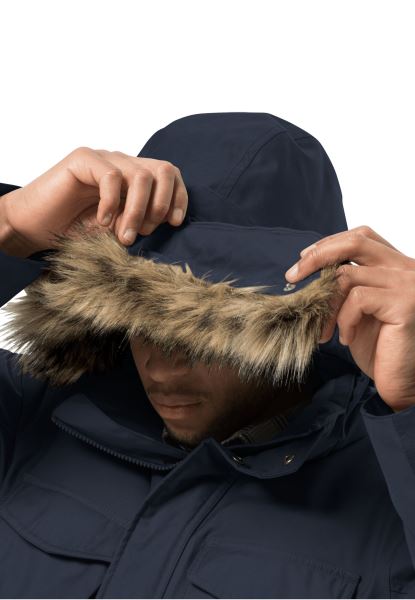 waterdicht, Winddicht, Extra Warm En Met Een Stoer, Tijdloos Design, De Winterfrost Donsparka Helpt Je Stijlvol De Winter Door. De Superademende Texapore Ecosphere Pro Buitenstof, Met Duurzaam Biologisch Katoen, Houdt Wind, Sneeuw En Regen Buiten - Precies Wat Je Nodig Hebt Als Je Buiten Bent Bij Winters Weer. Een High-loft Donsvulling Zorgt Voor De Warmte. Met In Totaal Acht Zakken Is Er Genoeg Ruimte Voor Je Benodigdheden. De Taille Is Verstelbaar En De Afneembare Capuchon Met Afneembare Rand Van Imitatiebont Beschermt Je Hoofd En Nek.