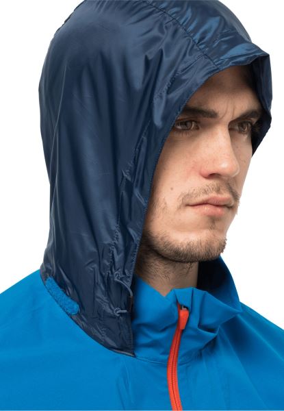 de Jas Is Aan De Achterkant Iets Langer Gesneden En Heeft Een Rubberen Gripper Aan De Zoom, Zodat Je Rug Niet Wordt Blootgesteld Als Je Erin Rijdt De Druppels. En Als U De Capuchon Niet Nodig Heeft, Kunt U Deze In De Kraag Van De Jas Opbergen.